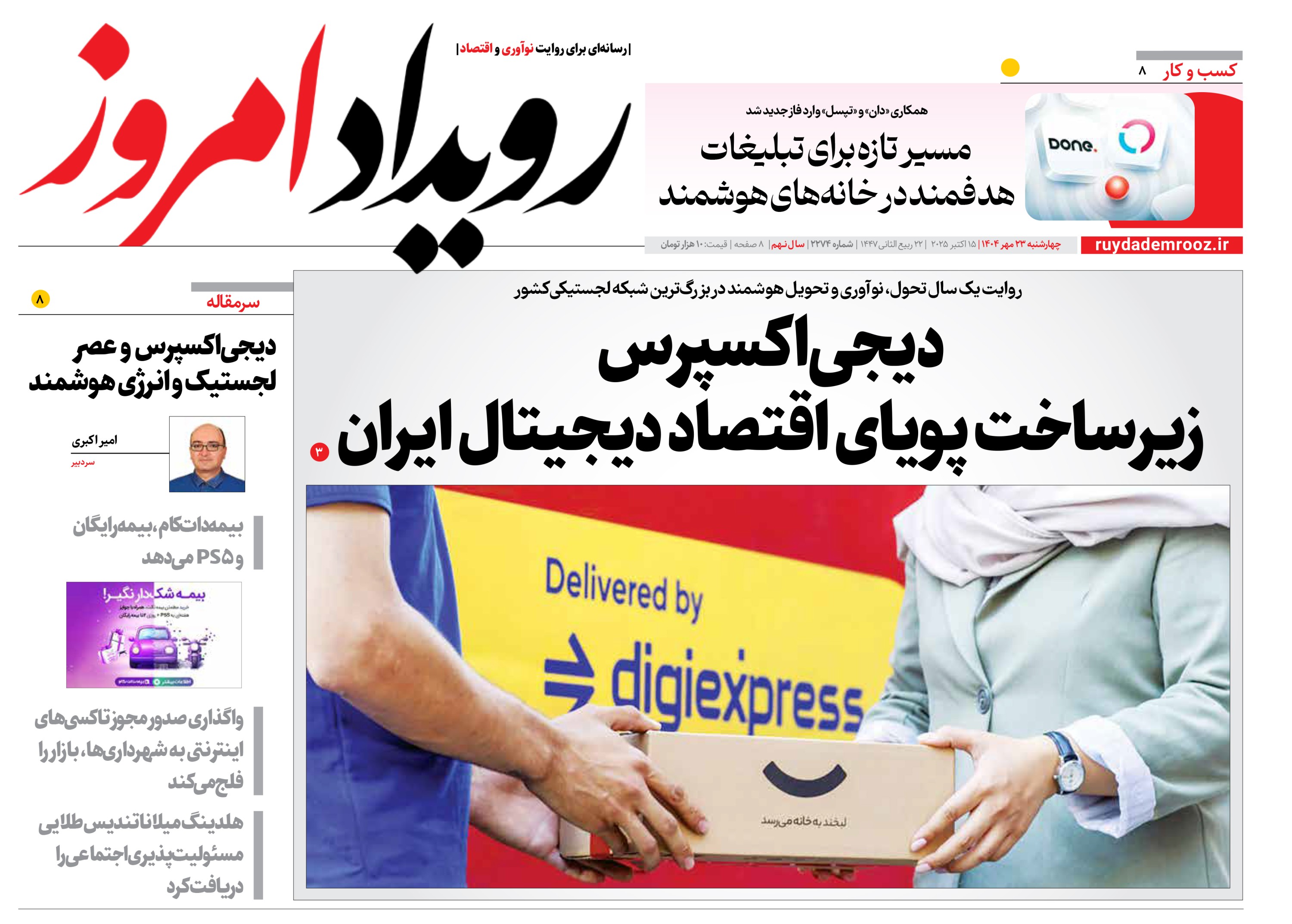 روزنامه رویداد امروز شنبه ۲۶ مهر 1404