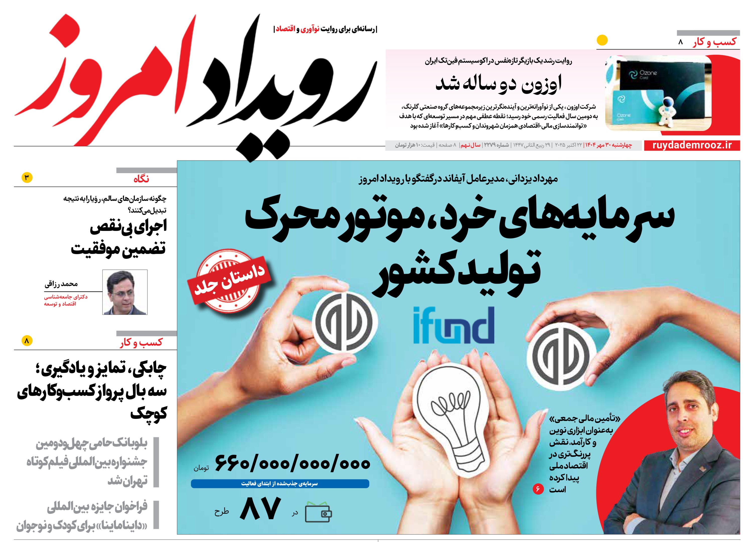 روزنامه رویداد امروز چهارشنبه 30 مهر 1404