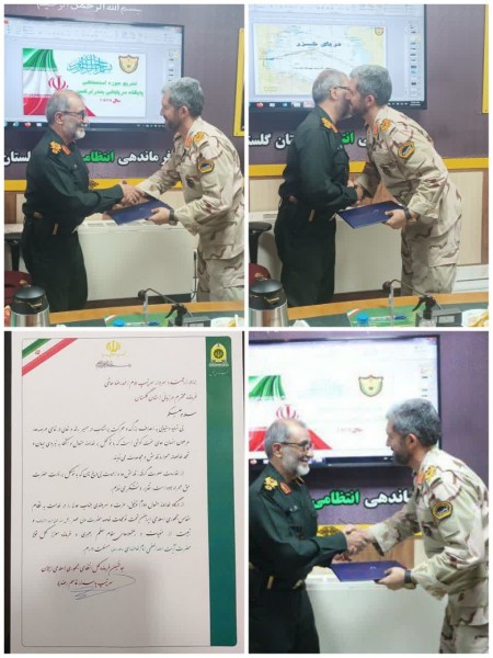 با توجه به ارزيابي هاي به عمل آمده از اجراي ماموريت هاي محوله از عملکرد مجموعه مرزباني استان گلستان،سردار قاسم رضايي جانشين فرمانده کل انتظامي جمهوری اسلامی ایران در پایان برگزاري کميسيون عمليات در ستاد انتظامي استان از سرتیپ دوم ستاد احمد رضا حاتمي فرمانده مرزباني استان گلستان به عنوان فرمانده نمونه و برتر تقدير به عمل آورد.