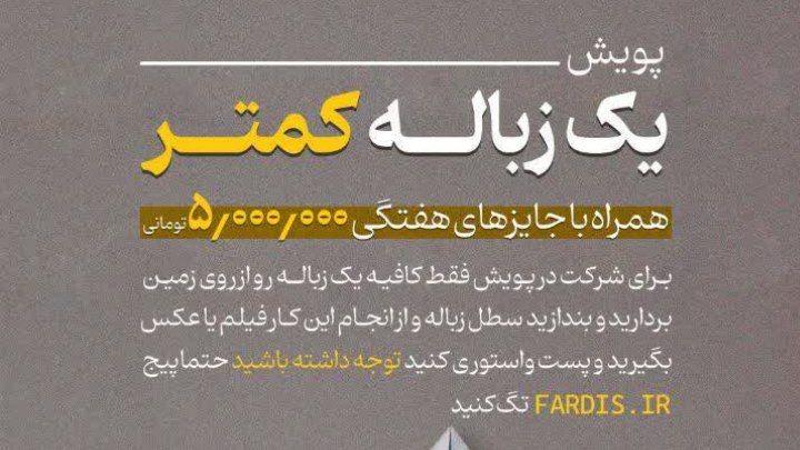 پایگاه خبری رویداد ایران : ولیالله صاحبکاری، در این رابطه اظهار کرد: این پویش با شعار «فردیس شهر پاک» آغازشده و همه شهروندان میتوانند تنها با برداشتن یک زباله از سطح معابر و انداختن آن در سطل زباله در این حرکت فرهنگی شرکت کنند.
