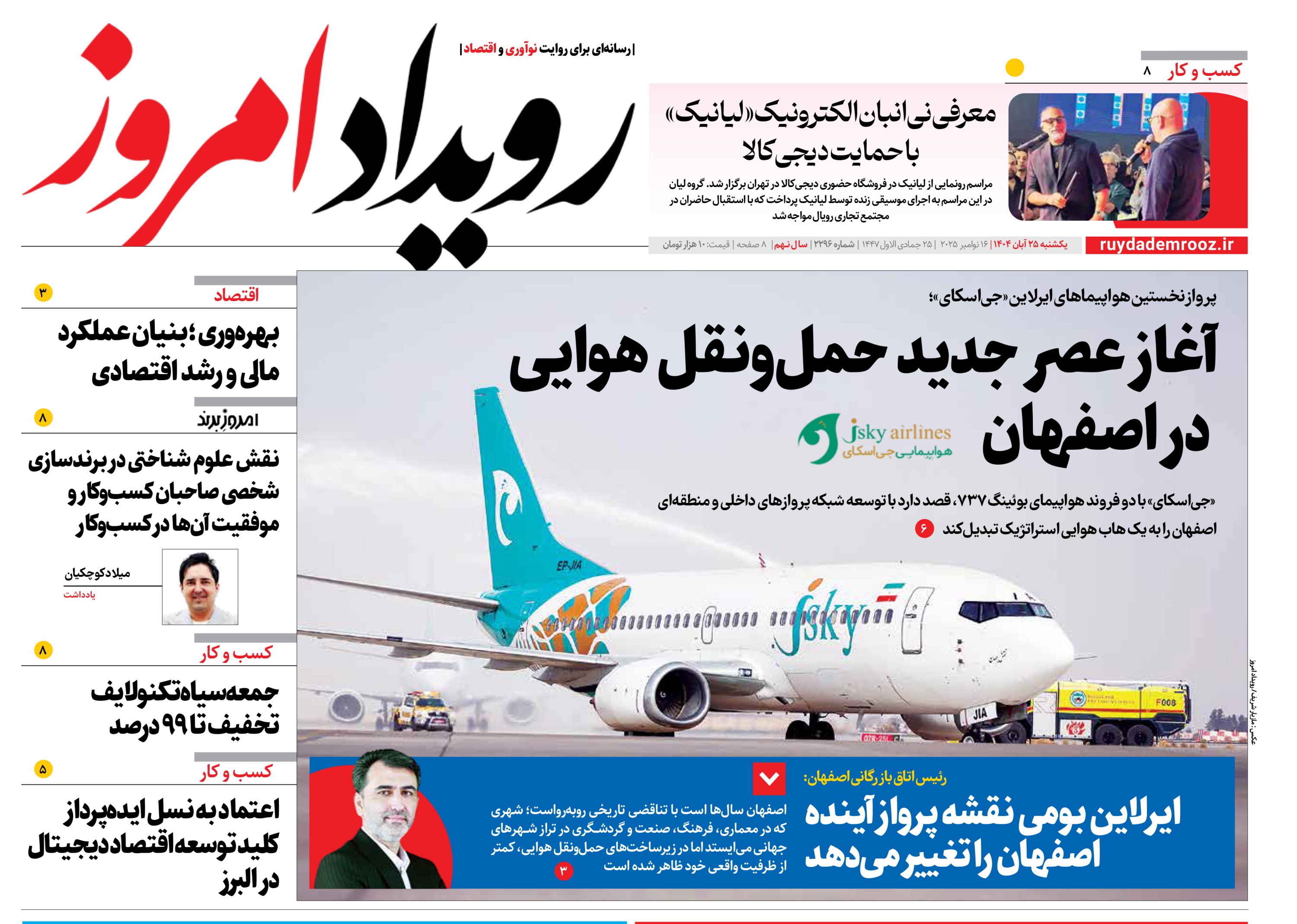 روزنامه رویداد امروز یکشنبه ۲۵آبان 1404