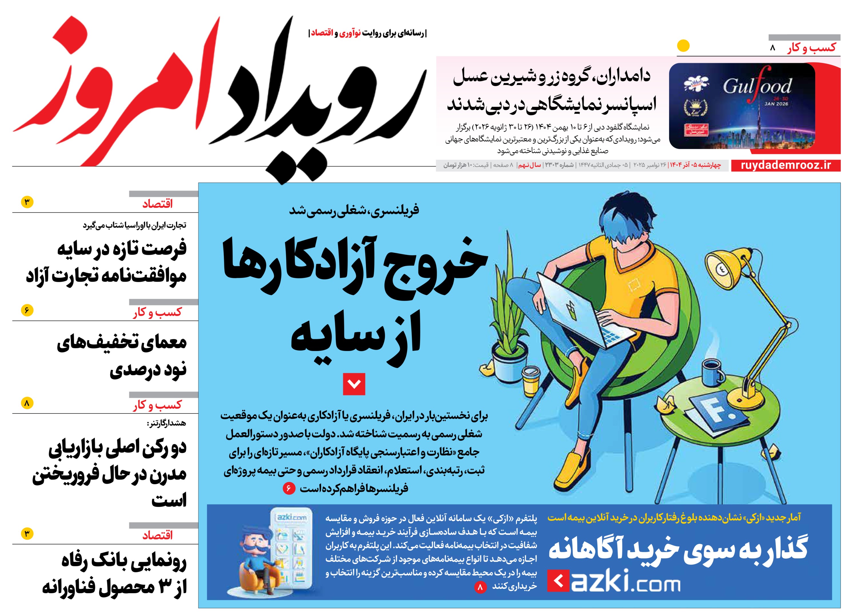 روزنامه رویداد امروز چهارشنبه ۵ آذر 1404