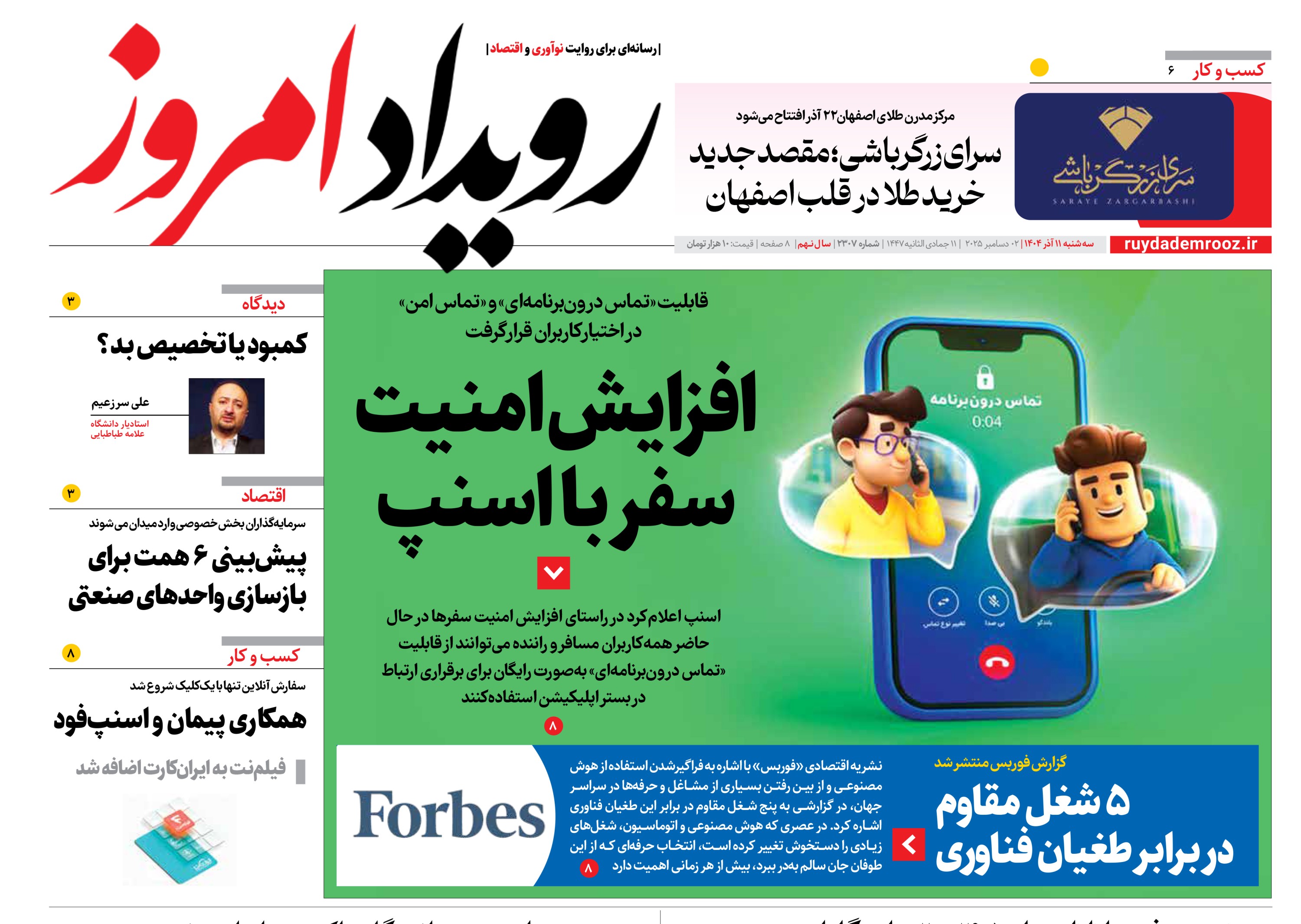 روزنامه رویداد امروز سه شنبه ۱۱ آذر 1404
