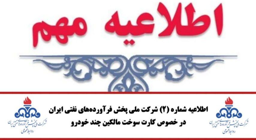 شرکت ملی پخش فرآوردههای نفتی ایران در خصوص کارت سوخت مالکین چند خودرو اطلاعیه شماره 2 را صادر کرد.