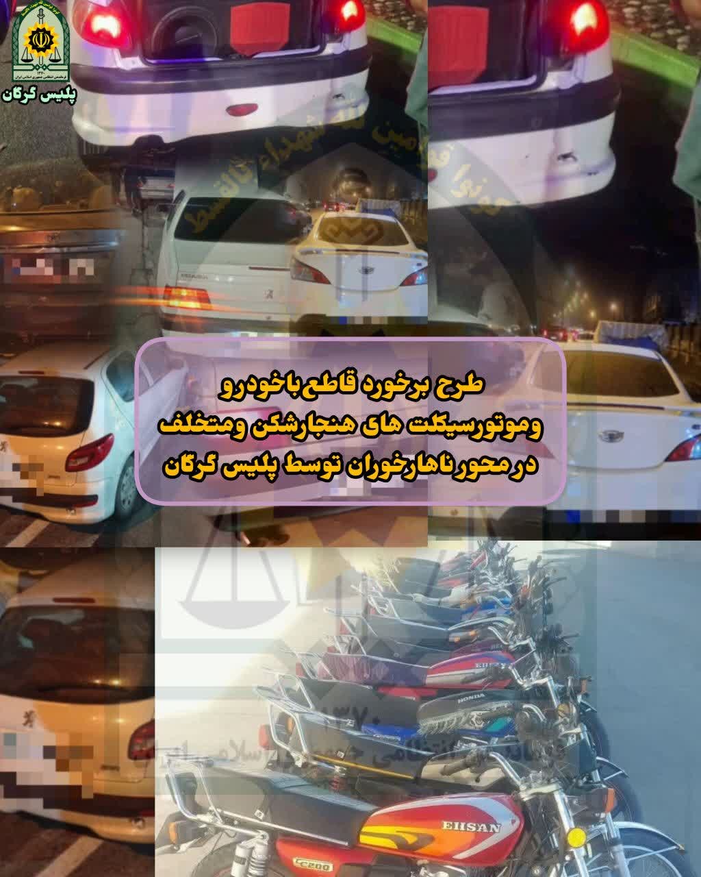 ۱۳دستگاه موتورسیکلت وخودرو متخلف در گرگان توقيف شد