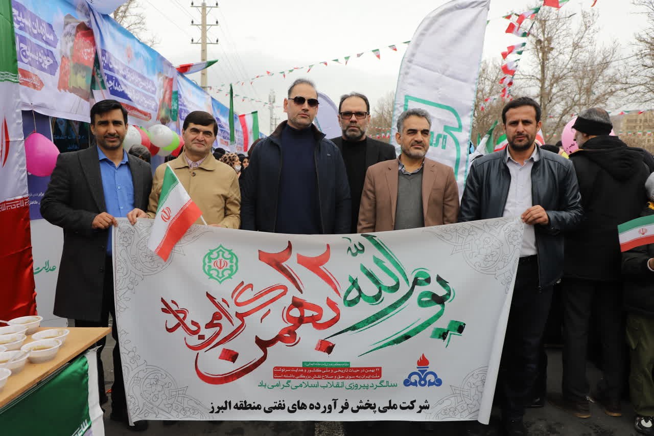 حضور مدیر، معاونین و جمعی از کارکنان شرکت ملی پخش فرآورده های نفتی منطقه البرز در راهپیمایی باشکوه ۲۲ بهمن