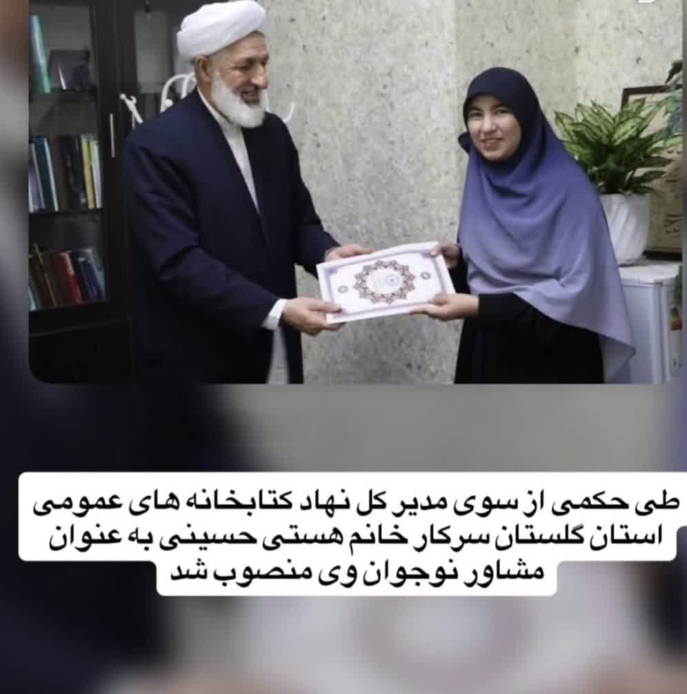 در گامی نوآورانه برای شنیدن صدای نسل امروز، مدیرکل نهاد کتابخانههای عمومی استان گلستان با صدور حکمی، هستی حسینی، عضو توانمند کانون پرورش فکری کودکان و نوجوانان گلستان را به عنوان «مشاور نوجوان» خود منصوب کرد؛ اقدامی الهامبخش که جایگاه نوجوانان را از مخاطب صرف به همراه و همفکر در عرصه تصمیمسازیهای فرهنگی ارتقا میدهد.