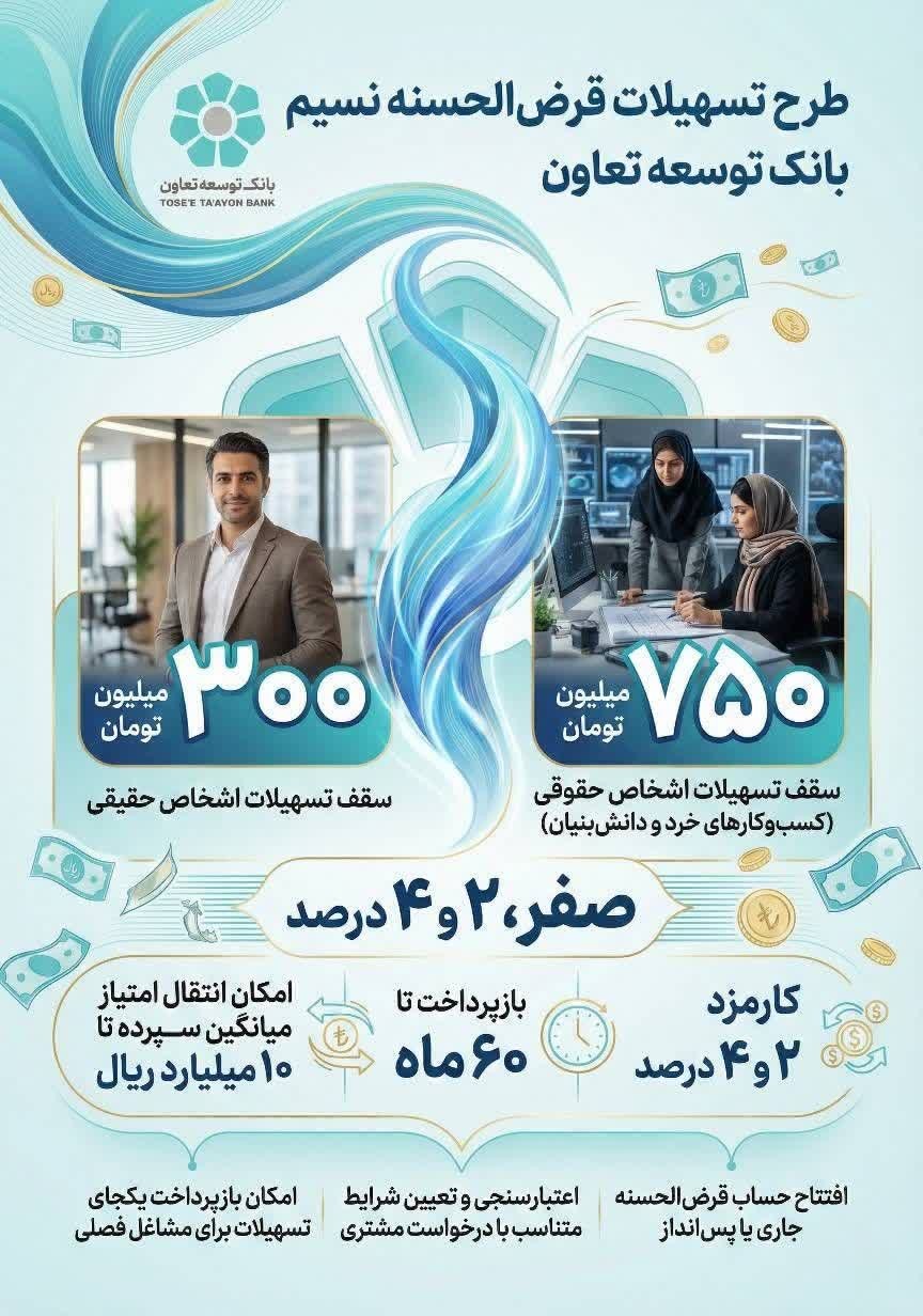 طرح تسهیلات قرض الحسنه نسیم بانک توسعه تعاون
