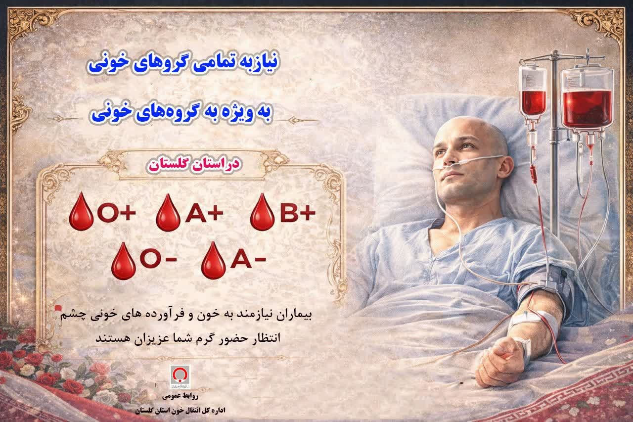 دعوت عمومی برای نجات جان بیماران نیازمند به خون در استان گلستان