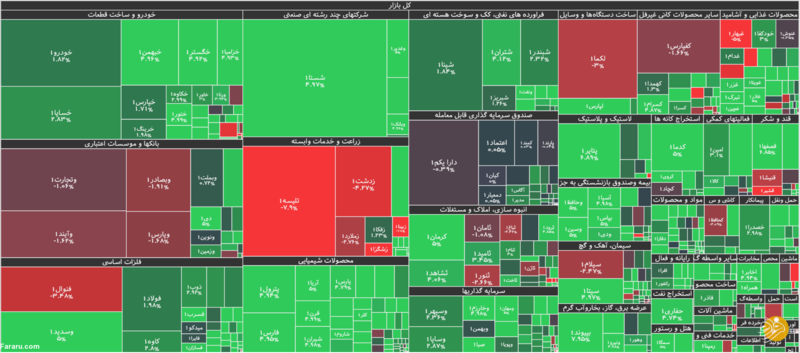 بررسی نقشه بازار در ابتدای معاملات امروز نشان میدهد گروه خودرو و ساخت قطعات شرایط بهتری را نسبت به روز گذشته تجربه میکند و شاهد افزایش قیمت سهام در نمادهای خودرویی هستیم. به جز خودرو، خساپا و خپارس دیگر نمادها از جمله خگستر، خبهمن، خزامیا و خرینگ اغلب صف خرید دارند. در گروه فلزات اساسی شرایط کمی پیچیده شده. وسدید با صف خرید خود را به صدر بیشترین حجم معاملات این گروه رسانده و فنوال با جمع آوری صف فروش در رتبه دوم گروه قرار گرفته. این درحالی است که فلزات اساسی میزبان دو نماد شاخصساز فولاد و فملی است. این گروه امروز بیشتر سبزرنگ است. بانکها در رشد بورس همراهی نمیکنند. وتجارت و وبملت افزایش قیمت نه چندان زیادی را پشت سر گذاشته و وبصادر، وپارس و وآیند با کمی کاهش قیمت کار خود را شروع کردهاند. شستا بزرگترین نماد در نقشه بازار است و با صف خرید سهامدارانش را امیدوار کرده است. دیگر نمادهای گروه هولدینگها هم شرایط مشابهی دارند. زراعت به رنگ قرمز درآمده. همانطور که قابل پیشبینی بود، با اطلاعیه روز گذشته فرابورس مبنی بر بازگشت دامنه نوسان این گروه به پنج درصد، امروز شاهد افزایش فشار فروش و حتی تشکیل صف در نمادهای این گروه هستیم. محصولات شیمیایی امروز در صف خرید قفل شدهاند و شاهد یک گروه تماما سبزرنگ در نقشه بازار هستیم. پالایشگاهها امروز هماهنگ با یکدیگر آرام در مدار صعودی حرکت میکنند. صندوقهای ETF بین یک تا سه درصد نسبت به دیروز رشد کردهاند و سرمایهگذاریها هم گروهی سبزرنگ را تشکیل دادهاند. از جمله دیگر گروههای صعودی در بازار امروز میتوان به لاستیک، استخراج کانههای فلزی، قندیها، بیمهها، سیمانیها، عرض برق و گاز، داروییها و حمل و نقل اشاره کرد.
