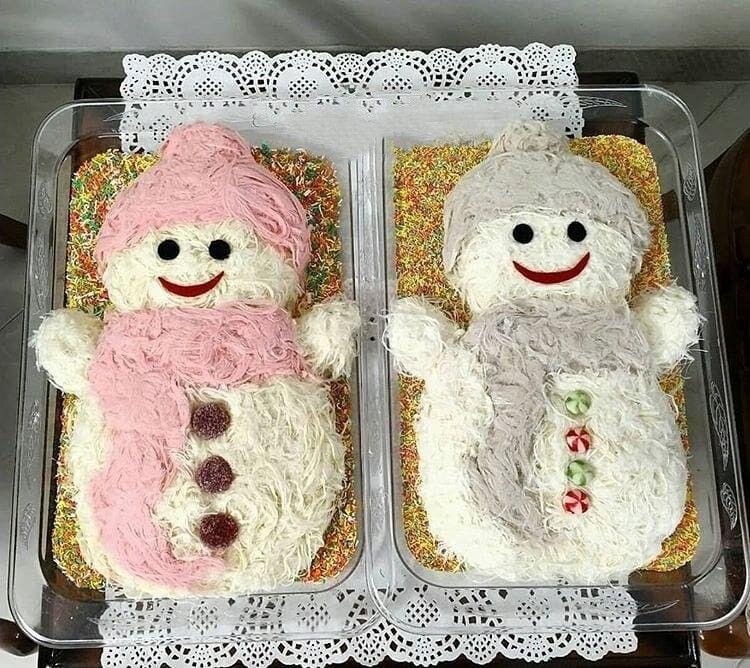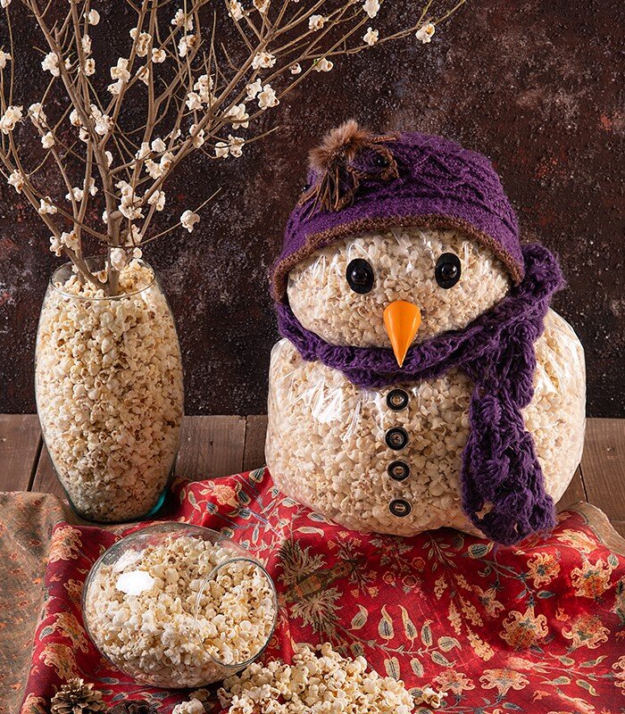 تزئین پاپ کورن و پفیلا به شکل آدم برفی