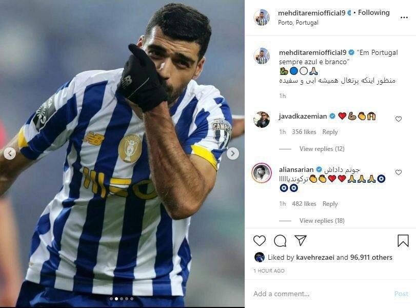 مهدی طارمی این روزها در پورتو خوش می درخشید و همه ایرانی ها را خوشحال کرده است. این بازیکن امروز پیامی در اینستاگرامی منتشر کرد که در آن به رنگ آبی اشاره ای داشت. او نوشت: «پرتغال همیشه آبی و سفید است.» از آنجا که همیشه هواداران سرخابی روی رنگ پیراهن تیم حریف حساس هستند مهدی در ادامه به فارسی نوشت: «منظور اینکه پرتغال همیشه آبی و سفید بوده.»