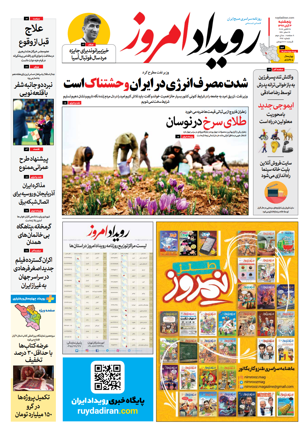 روزنامه رویداد امروز پنجشنبه ۳ آبان ۹۷
