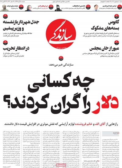 چه کسانی دلار را گران کردند؟ ؛ تیتر یک روزنامه سازندگی شنبه 5 آبان 97