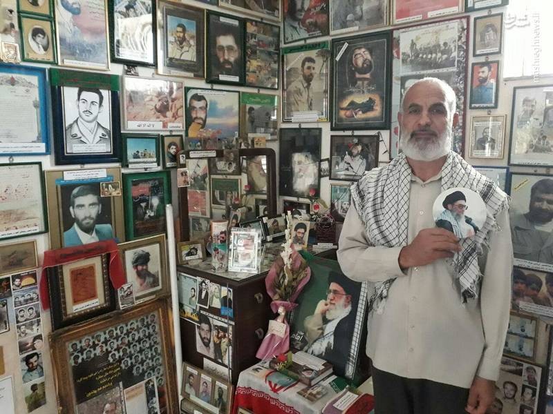 بین تمام این تصاویر روی دیوار، تصاویری است که به اسم، تاریخ شهادت و محل شهادت و نحوه شهادت شهدا ختم میشود، خسرو رحمتآبادی، دو تصویر هم از همرزمانش دارد، از دو شهید یکی بچه تهران و یکی بچه کنگاور: «شهید حاج روحا... اصل تهران، بچه ساوجبلاغ بود، فرمانده گردان ما بود که در عید قربان سال 66 شهید شد، شهید حاج رضا رحمتیزاده هم که از بچههای استان خودمان بود، از همرزمانم هستند که عکسشان را دارم و خیلی وقتها با آنها درد دل میکنم.»