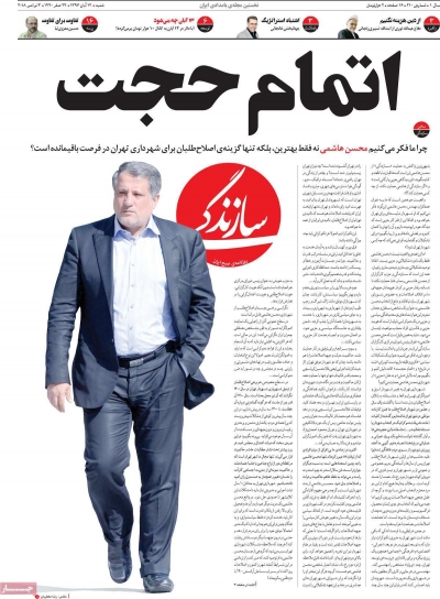 اتمام حجت ؛ تیتر یک روزنامه سازندگی شنبه 12 آبان 97