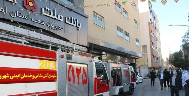 نجات ۳۵ نفر از کارمندان از آتش سوزی بانک ملت در اصفهان