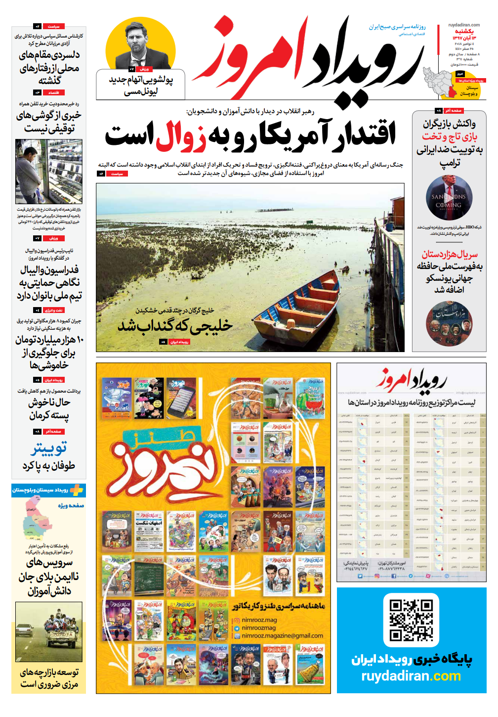 کد: 6325 | 13 آبان 1397 ساعت 00:00 روزنامه رویداد امروز یکشنبه ۱۳ آبان ۹۷ رویداد ایران رویداد امروز اشتراک گذاری گزارش خطا × اشتراک گذاری مطلب: روزنامه رویداد امروز یکشنبه ۱۳ آبان ۹۷ فیسبوک اینستاگرام تلگرام ایکس (توییتر) ایتا بله روبیکا × گزارش خطا برای گزارش خطا با پست الکترونیکی: ruydadiran[at]gmail.com در ارتباط باشید