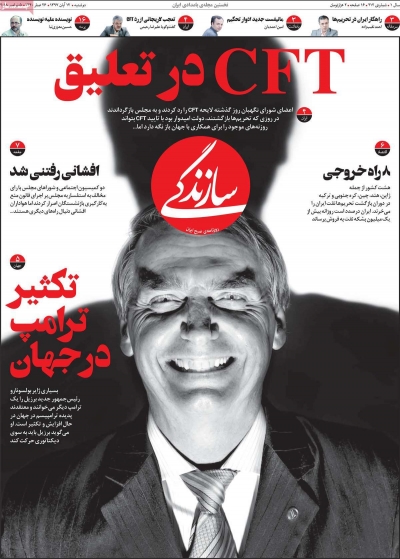 روزنامه سازندگی امروز دوشنبه 14 آبان ماه 97 با روی جلدی متفاوت و عکسی سیاه سفید انعکاس نظر شورای نگهبان پیرامون لایحه سی اف تی را به عنوان تیتر اصلی برگزید: