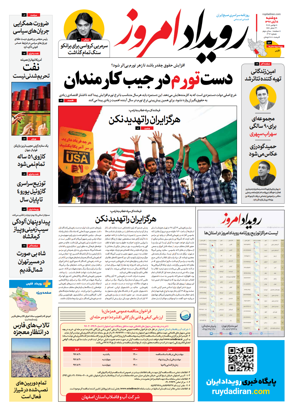 کد: 6367 | 14 آبان 1397 ساعت 00:00 روزنامه رویداد امروز دوشنبه ۱۴ آبان ۹۷ رویداد ایران رویداد امروز اشتراک گذاری گزارش خطا × اشتراک گذاری مطلب: روزنامه رویداد امروز دوشنبه ۱۴ آبان ۹۷ فیسبوک اینستاگرام تلگرام ایکس (توییتر) ایتا بله روبیکا × گزارش خطا برای گزارش خطا با پست الکترونیکی: ruydadiran[at]gmail.com در ارتباط باشید