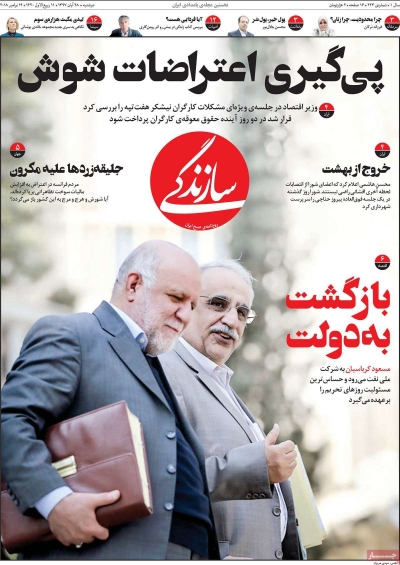 تصویر صفحه نخست روزنامه سازندگی را در زیر میبینید.