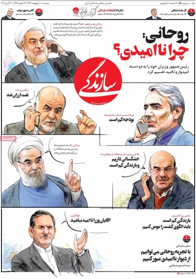 روحانی: چرا ناامیدی؟ ؛ تیتر یک روزنامه سازندگی دوشنبه 10 ادیبهشت