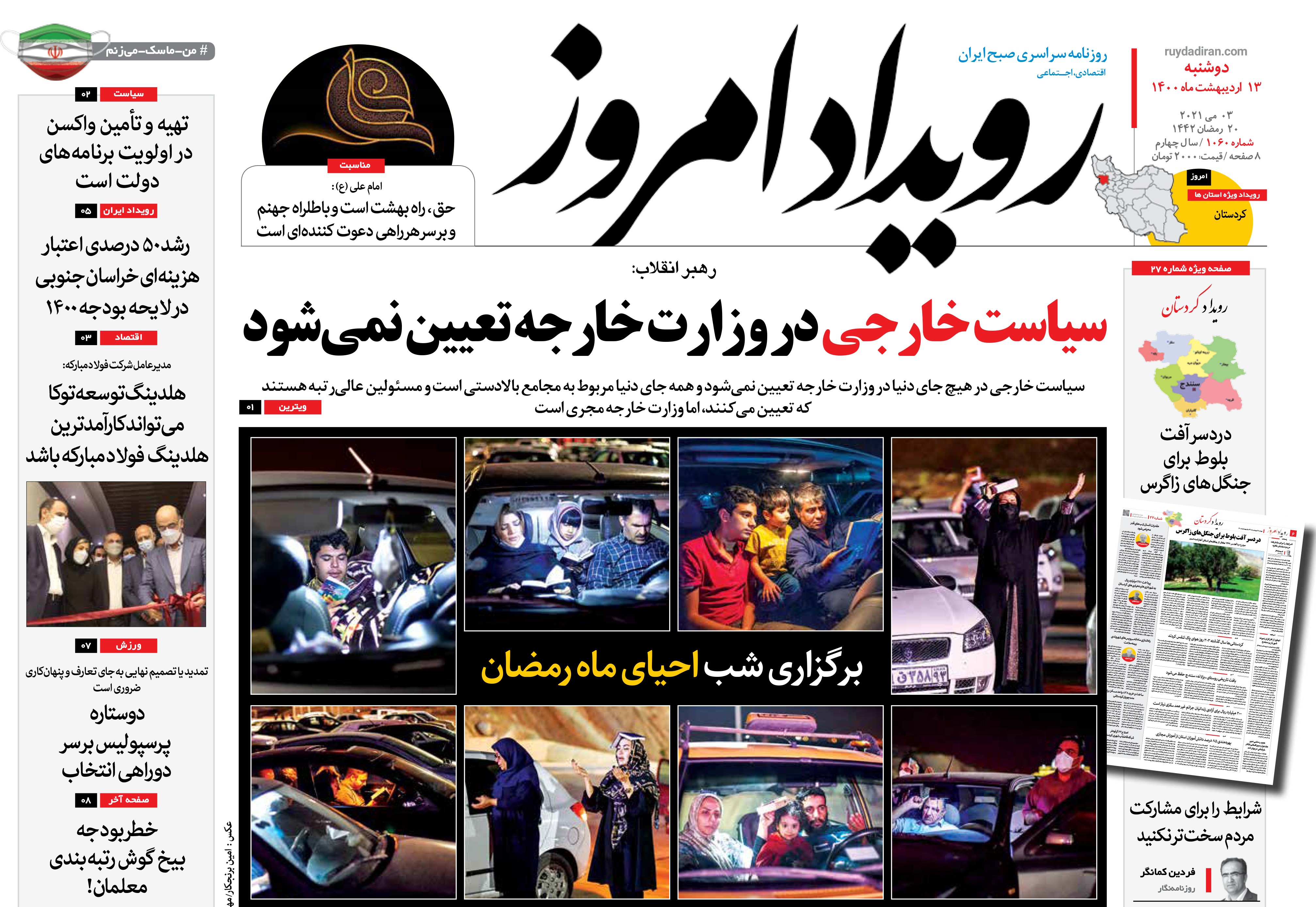 روزنامه رویداد امروز دوشنبه ۱۳ اردیبهشت ۱۴۰۰