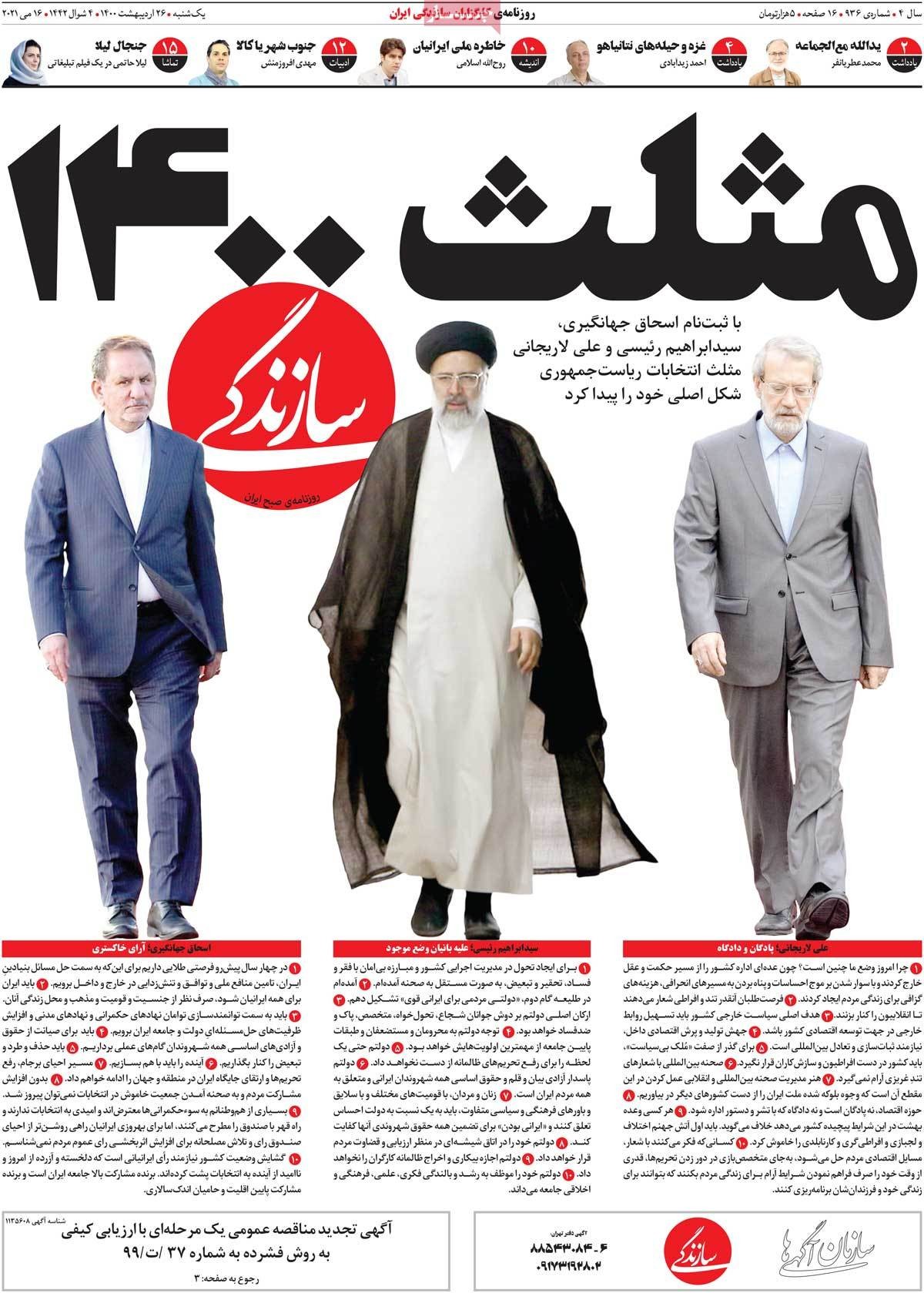 صفحه نخست امروز روزنامه سازندگی