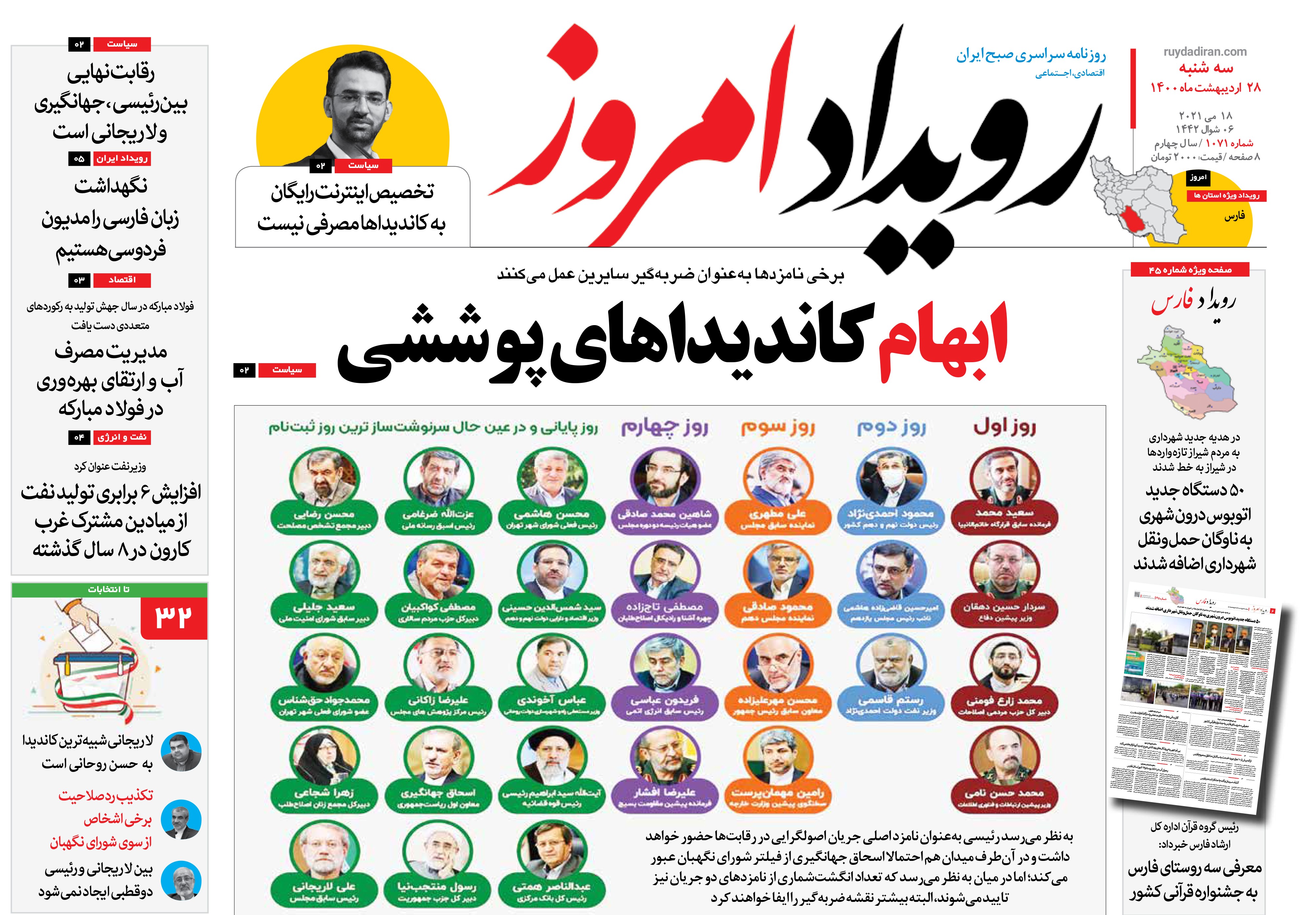 کد: 72238 | 28 اردیبهشت 1400 ساعت 03:49 روزنامه رویداد امروز سه شنبه ۲۸ اردیبهشت ۱۴۰۰ روزنامه رویداد امروز رویداد ایران اشتراک گذاری گزارش خطا × اشتراک گذاری مطلب: روزنامه رویداد امروز سه شنبه ۲۸ اردیبهشت ۱۴۰۰ فیسبوک اینستاگرام تلگرام ایکس (توییتر) ایتا بله روبیکا × گزارش خطا برای گزارش خطا با پست الکترونیکی: ruydadiran[at]gmail.com در ارتباط باشید