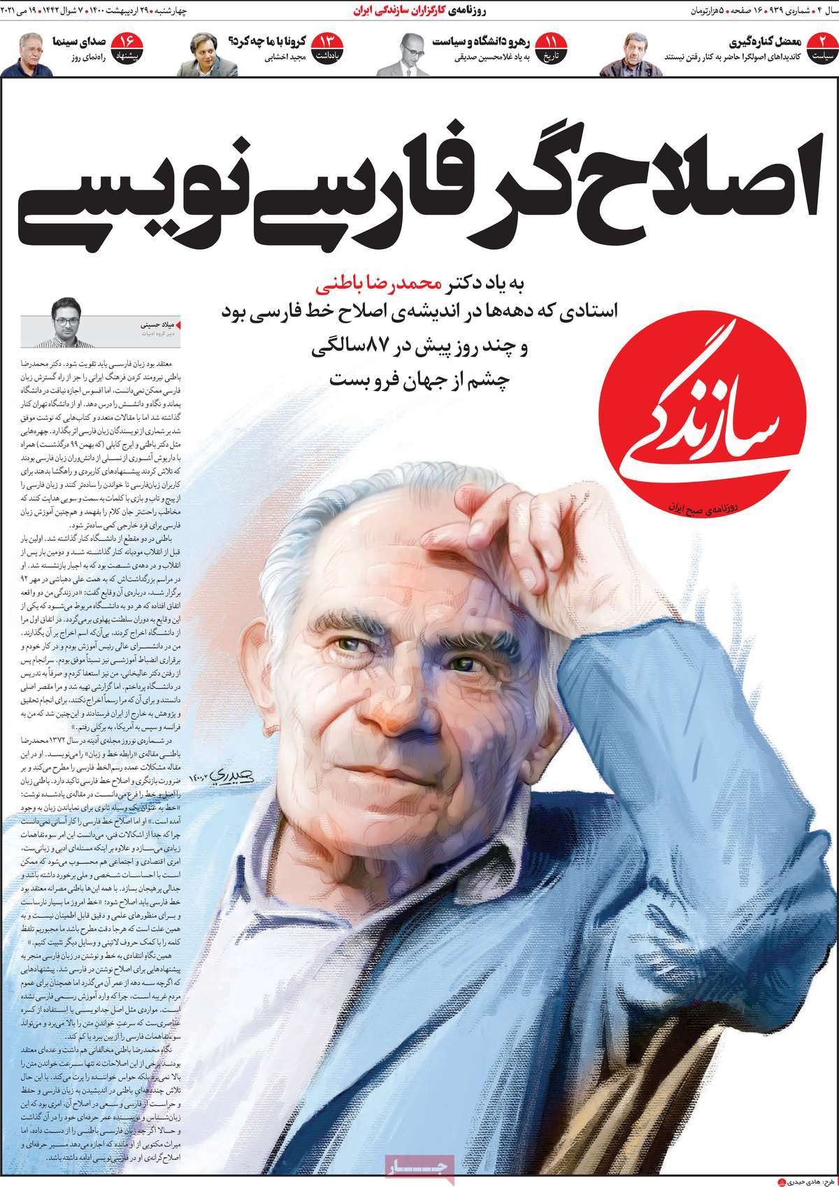 صفحه نخست امروز روزنامه سازندگی