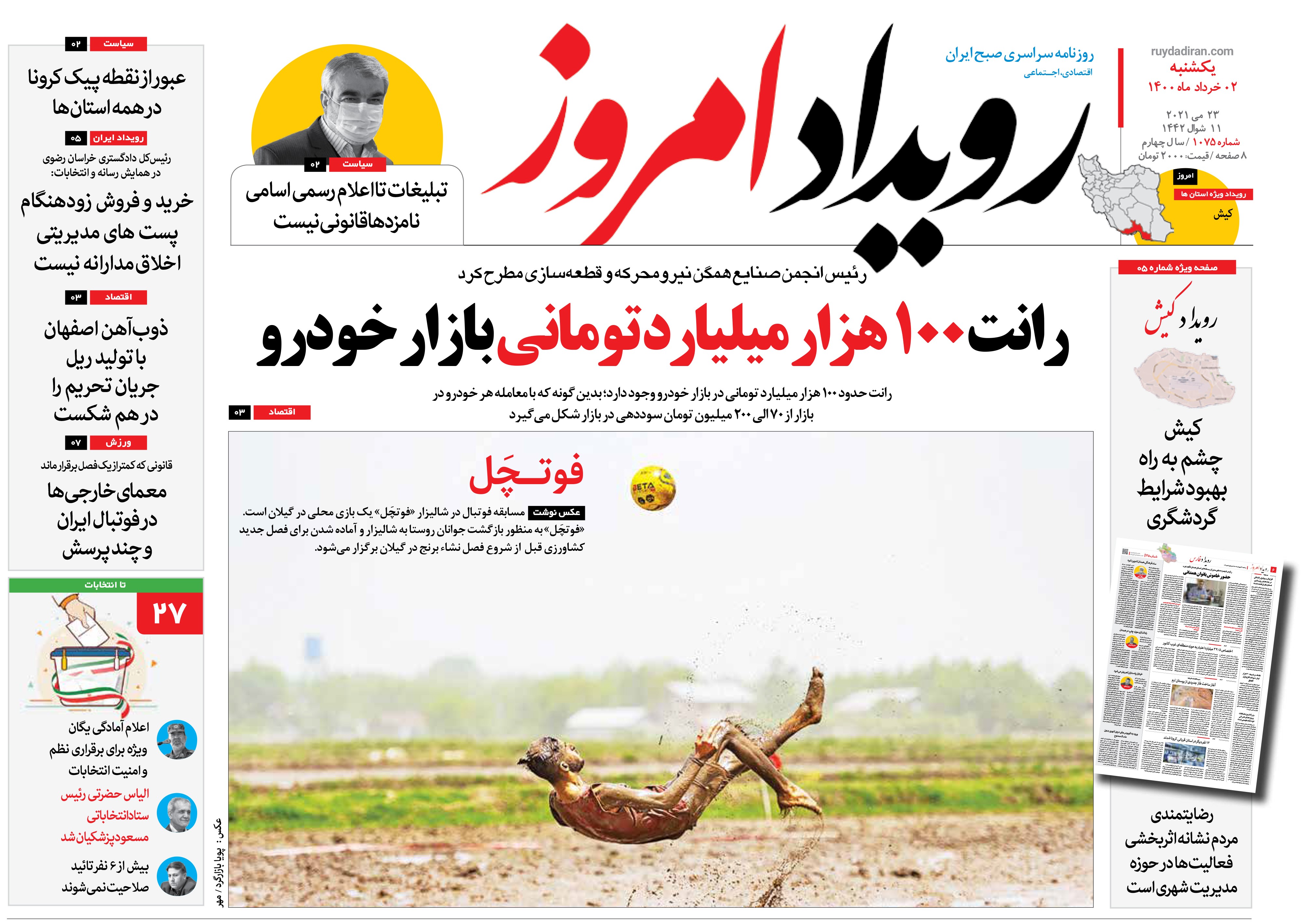 روزنامه رویداد امروز یکشنبه ۲ خرداد ۱۴۰۰