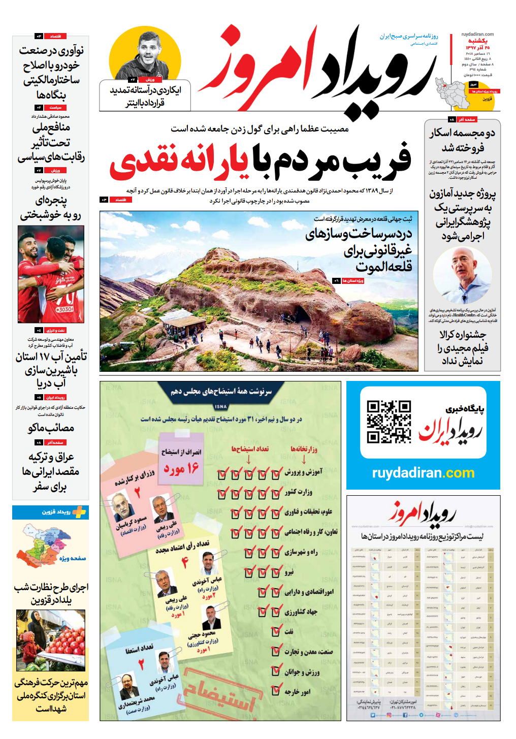 روزنامه رویداد امروز یکشنبه ۲۵ آذر ۹۷