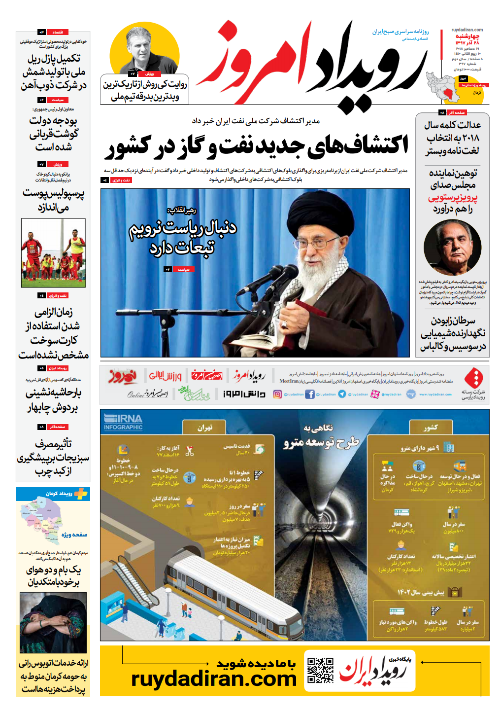 روزنامه رویداد امروز چهارشنبه ۲۸ آذر ۹۷