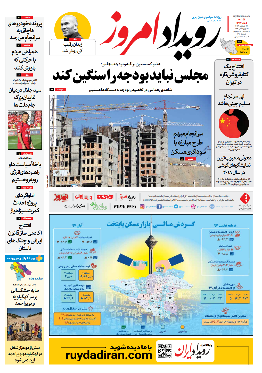 روزنامه رویداد امروز شنبه اول دی ۹۷