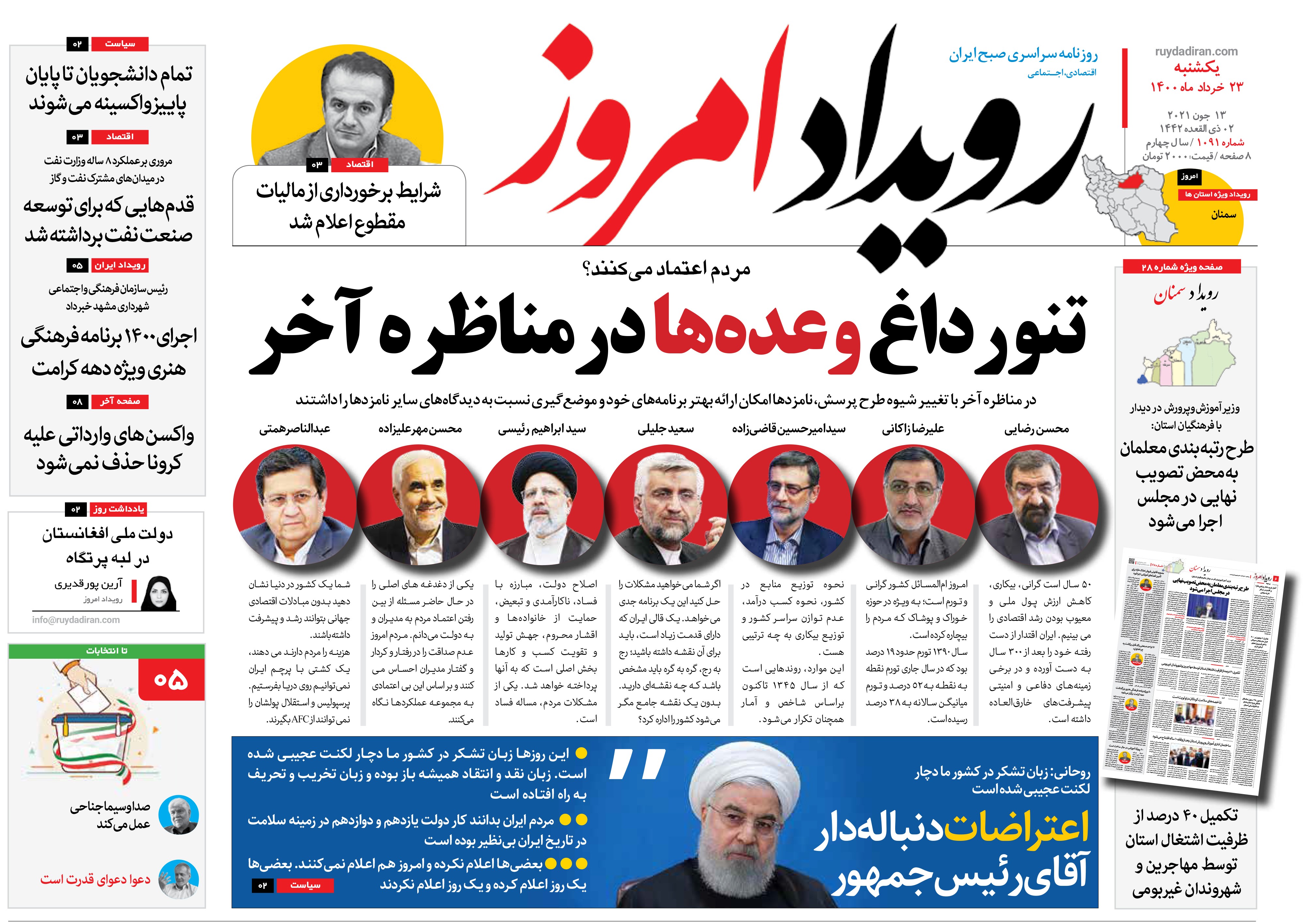 روزنامه رویداد امروز یکشنبه ۲۳ خرداد ۱۴۰۰