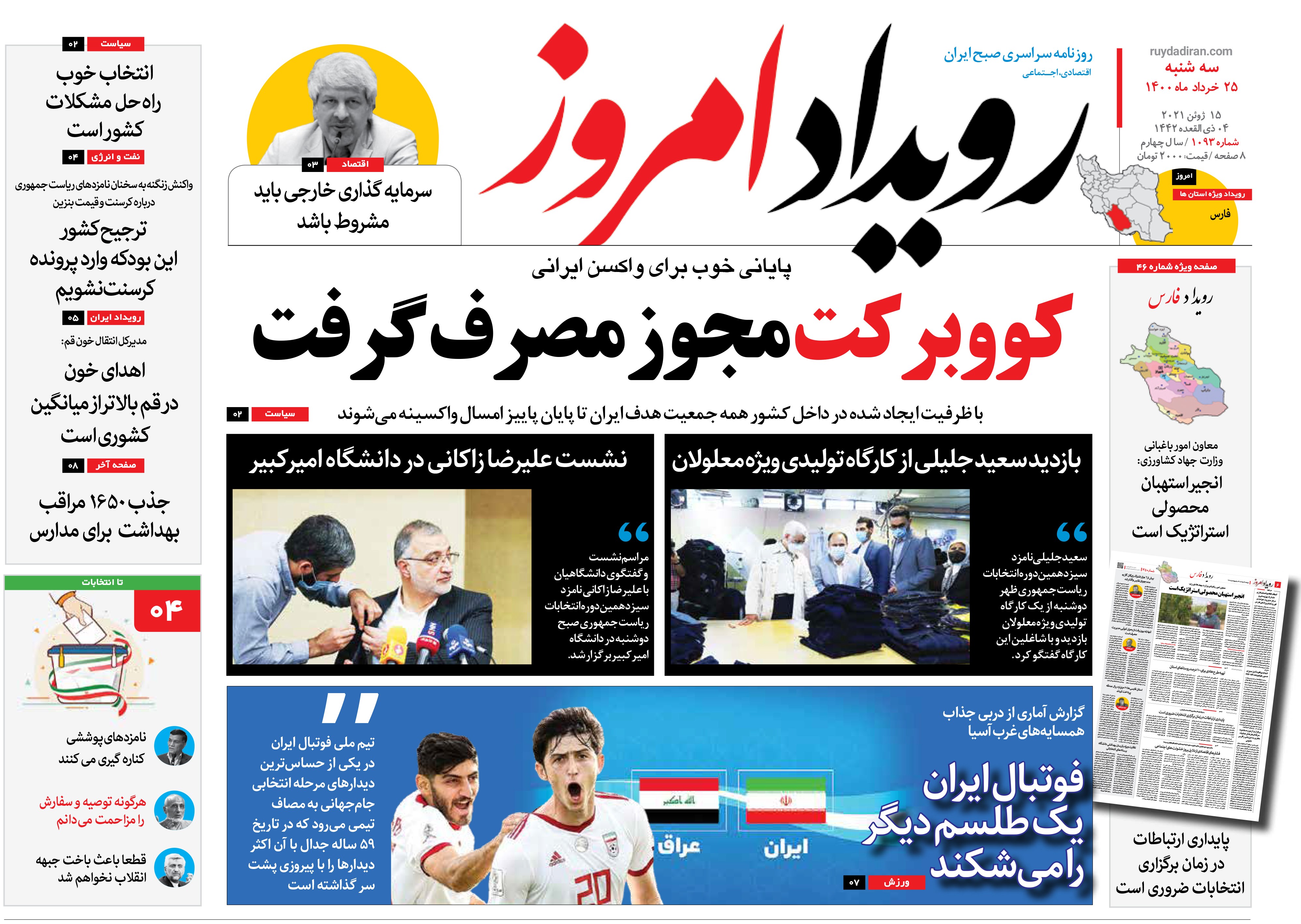 روزنامه رویداد امروز سه شنبه ۲۵ خرداد ۱۴۰۰