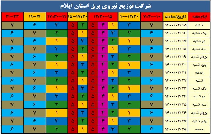 برنامه قطعی برق ایلام پنجشنبه 27 خرداد ۱۴۰۰