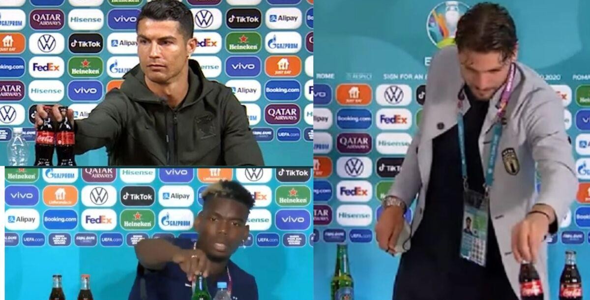 پیش از این رونالدو و بازیکن ایتالیا در نشست خبری خود در رقابت های جام ملت های اروپا 2020 با دیدن نوشابه روی میز نشست خبری آن را کنار گذاشته و بطری آب را جایگزین کرده و عنوان کردند به جای نوشابه آب مصرف کنید.
