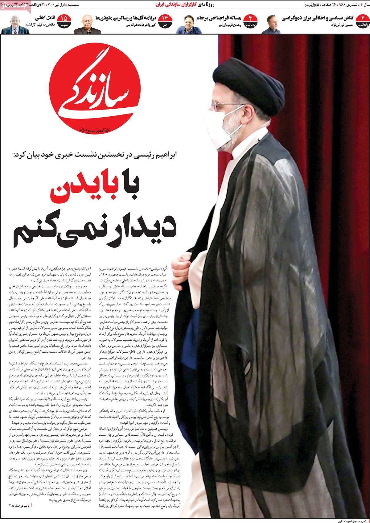 صفحه نخست امروز روزنامه سازندگی