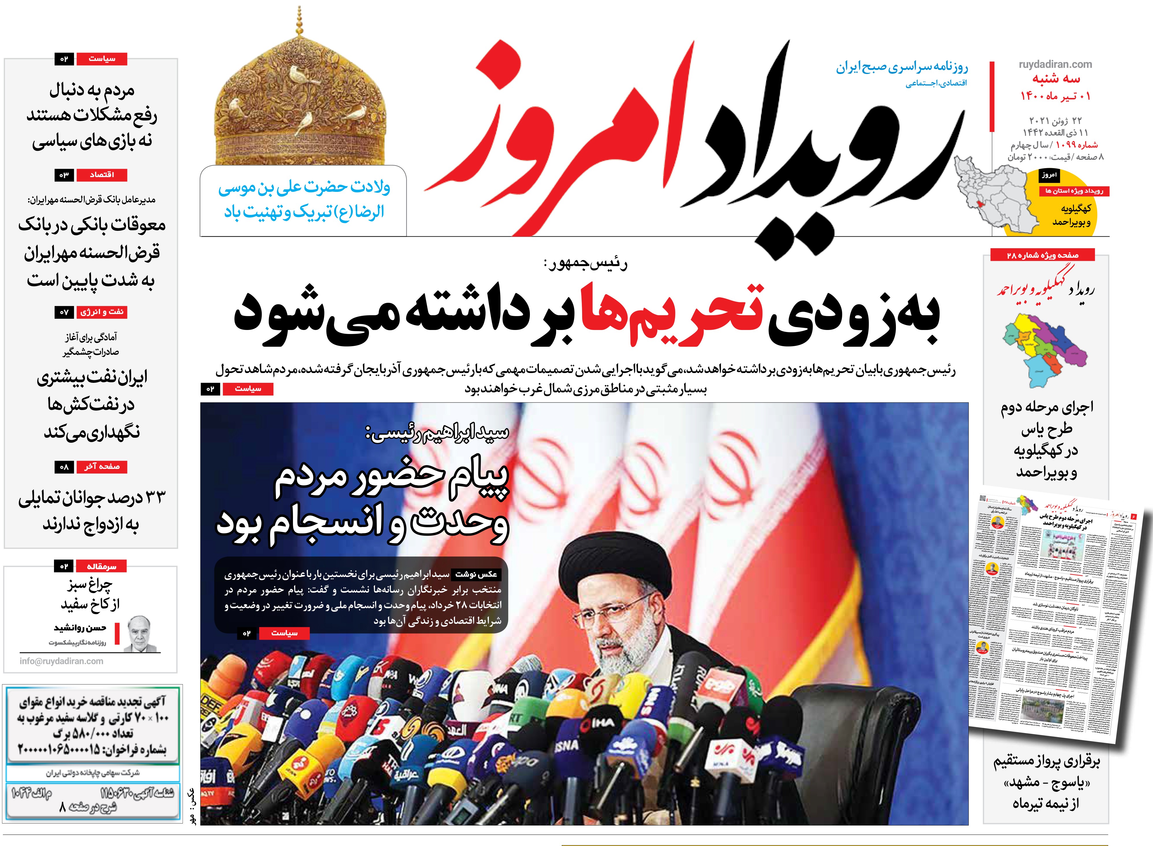 کد: 76751 | 01 تیر 1400 ساعت 05:23 روزنامه رویداد امروز سه شنبه ۱ تیر ۱۴۰۰ روزنامه رویداد امروز رویداد ایران اشتراک گذاری گزارش خطا × اشتراک گذاری مطلب: روزنامه رویداد امروز سه شنبه ۱ تیر ۱۴۰۰ فیسبوک اینستاگرام تلگرام ایکس (توییتر) ایتا بله روبیکا × گزارش خطا برای گزارش خطا با پست الکترونیکی: ruydadiran[at]gmail.com در ارتباط باشید