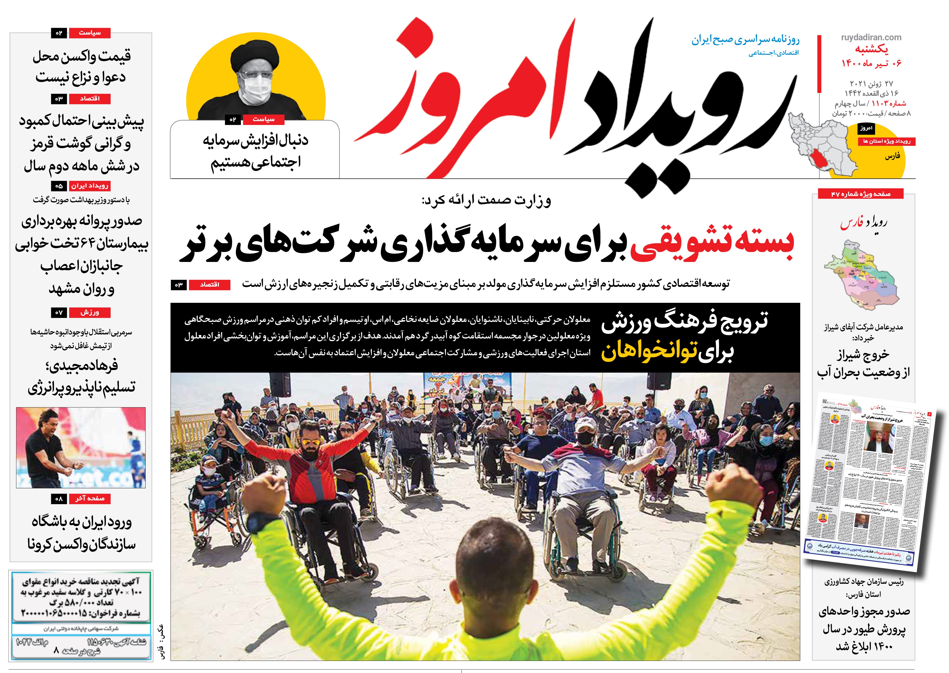 روزنامه رویداد امروز یکشنبه ۶ تیر ۱۴۰۰