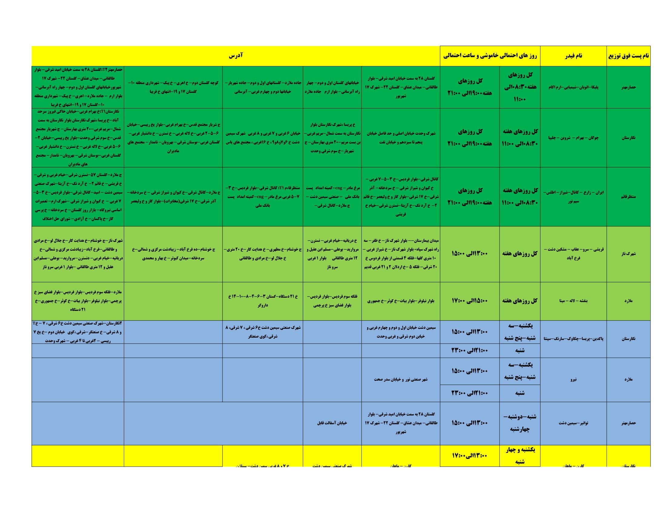 برنامه قطعی برق البرز دوشنبه 7 تیر ۱۴۰۰