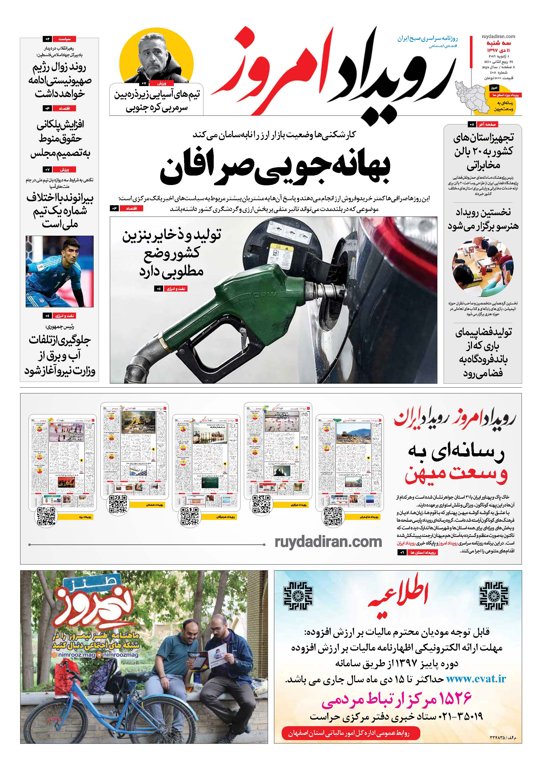 روزنامه رویداد امروز سه شنبه 11 دی ۹۷