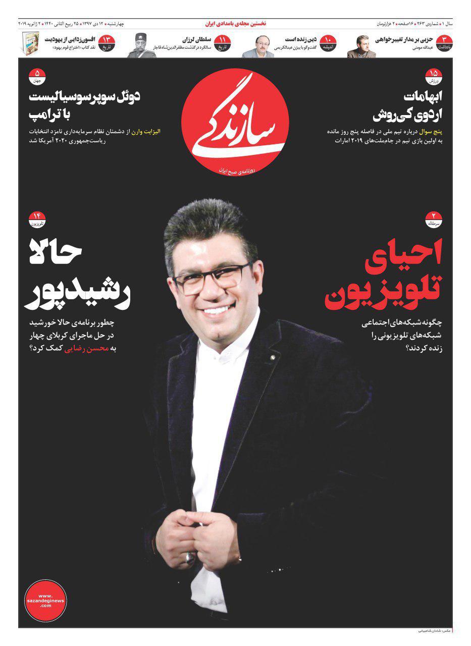 تصویر صفحه نخست روزنامه سازندگی را در زیر میبینید