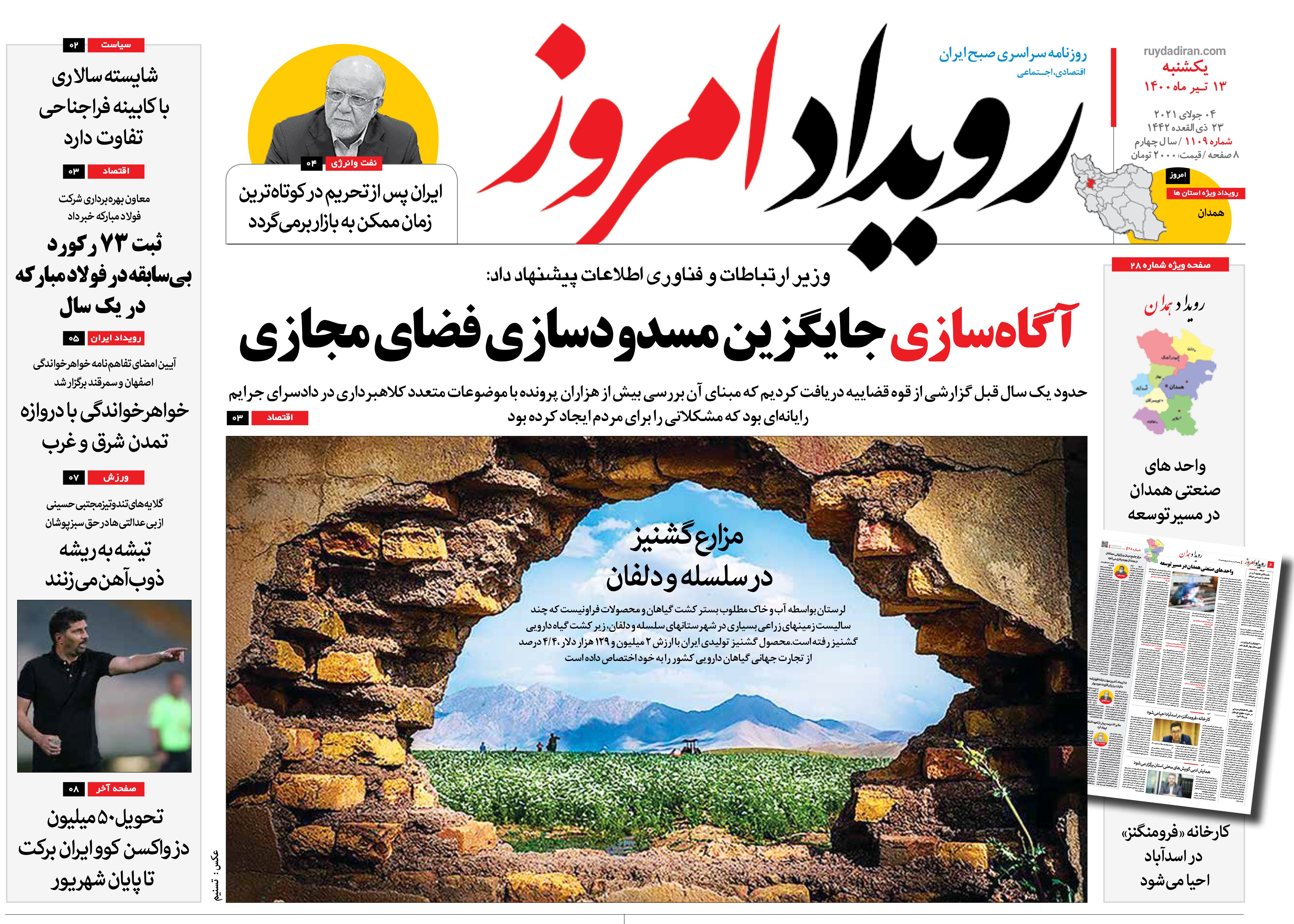 کد: 78493 | 13 تیر 1400 ساعت 03:14 روزنامه رویداد امروز یکشنبه ۱۳ تیر ۱۴۰۰ روزنامه رویداد امروز رویداد ایران اشتراک گذاری گزارش خطا × اشتراک گذاری مطلب: روزنامه رویداد امروز یکشنبه ۱۳ تیر ۱۴۰۰ فیسبوک اینستاگرام تلگرام ایکس (توییتر) ایتا بله روبیکا × گزارش خطا برای گزارش خطا با پست الکترونیکی: ruydadiran[at]gmail.com در ارتباط باشید