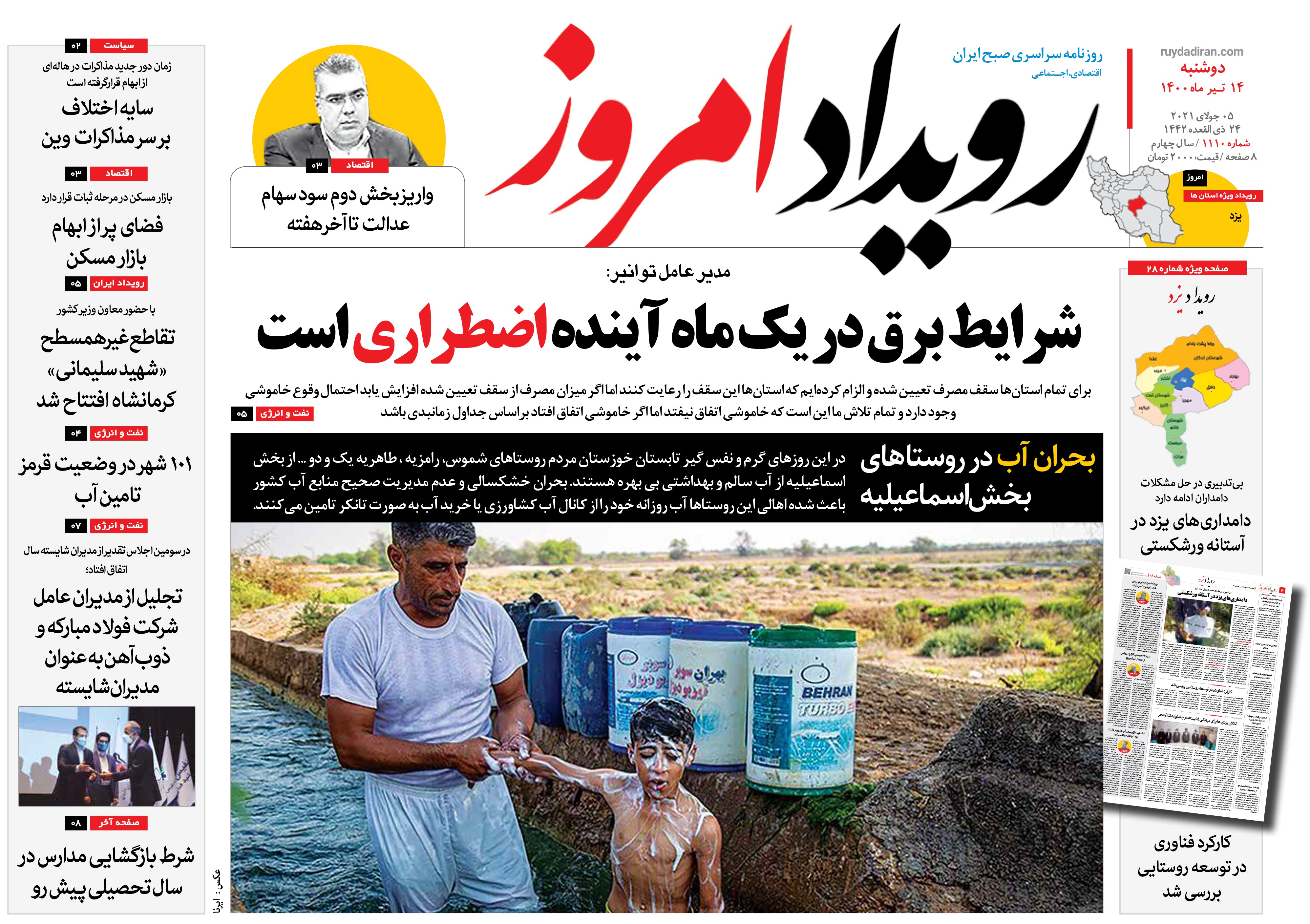 کد: 78670 | 14 تیر 1400 ساعت 02:13 روزنامه رویداد امروز دوشنبه ۱۴ تیر ۱۴۰۰ روزنامه رویداد امروز رویداد ایران اشتراک گذاری گزارش خطا × اشتراک گذاری مطلب: روزنامه رویداد امروز دوشنبه ۱۴ تیر ۱۴۰۰ فیسبوک اینستاگرام تلگرام ایکس (توییتر) ایتا بله روبیکا × گزارش خطا برای گزارش خطا با پست الکترونیکی: ruydadiran[at]gmail.com در ارتباط باشید