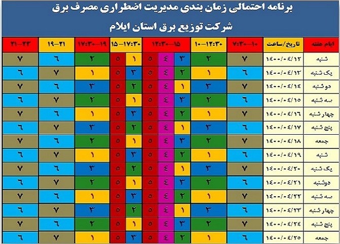 برنامه قطعی برق ایلام پنجشنبه 24 تیر ۱۴۰۰
