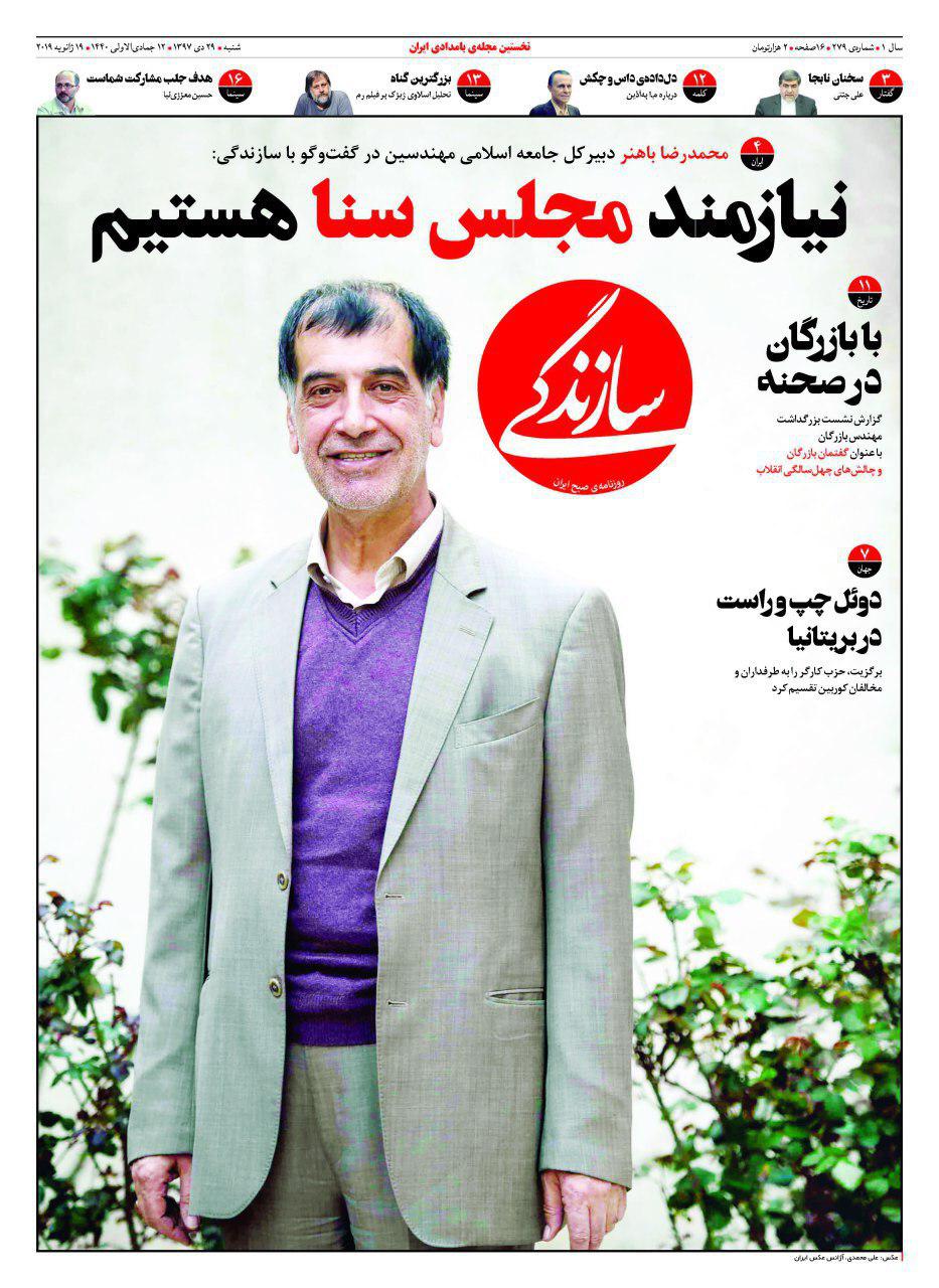 روزنامه سازندگی نیازمند مجلس سنا هستیم را روی جلد برد