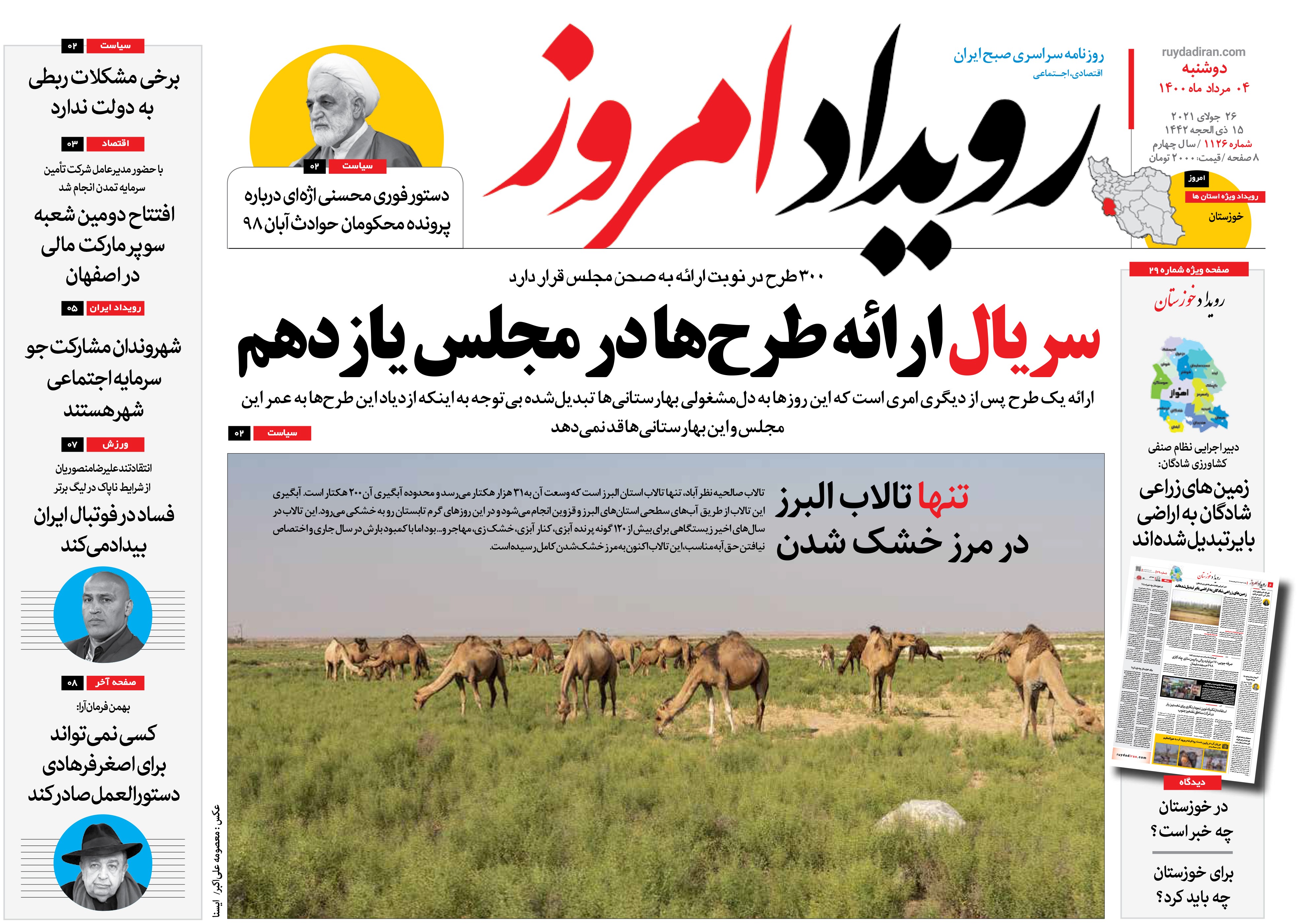 روزنامه رویداد امروز دوشنبه ۴ مرداد ۱۴۰۰