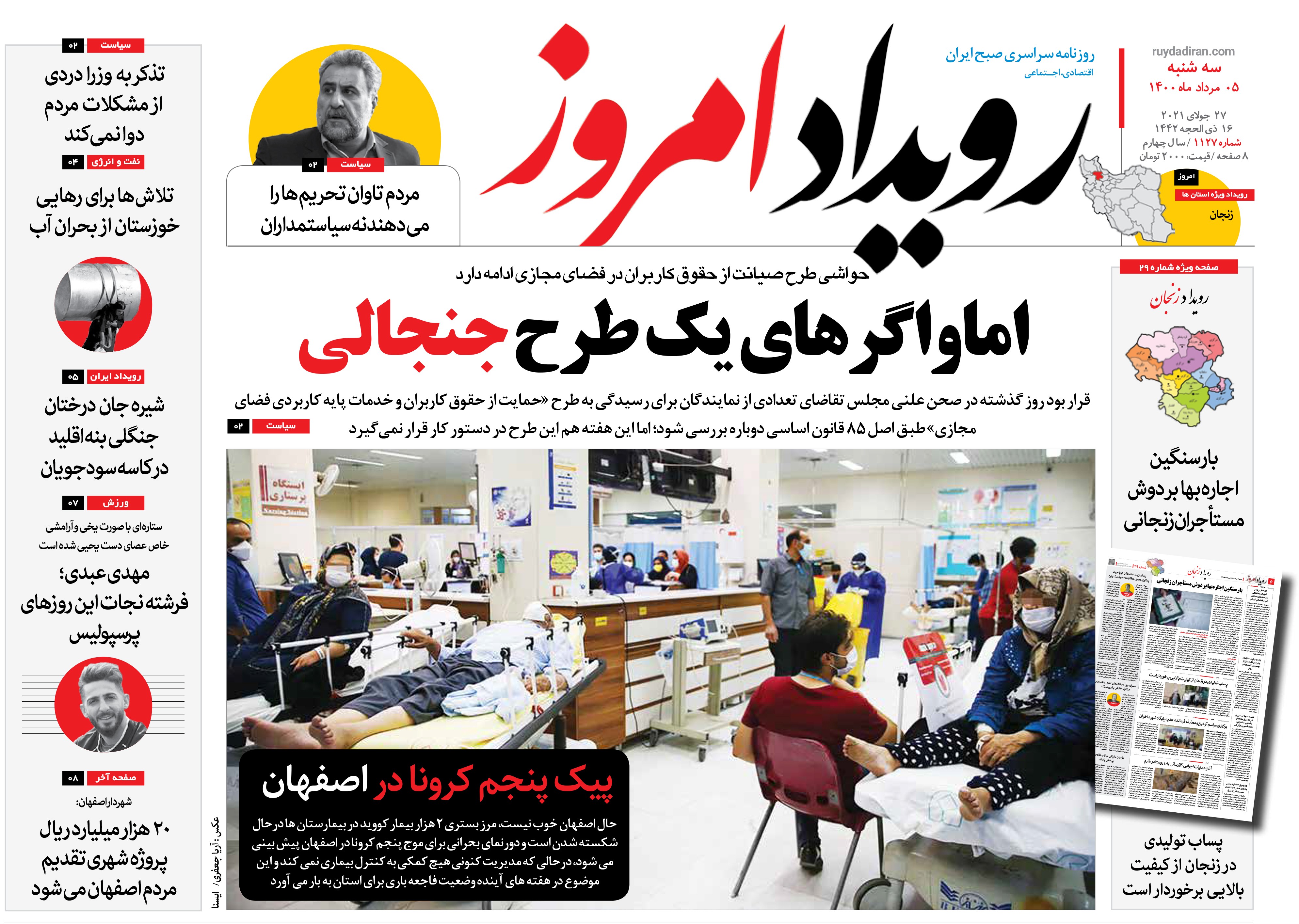 روزنامه رویداد امروز سه شنبه ۵ مرداد ۱۴۰۰